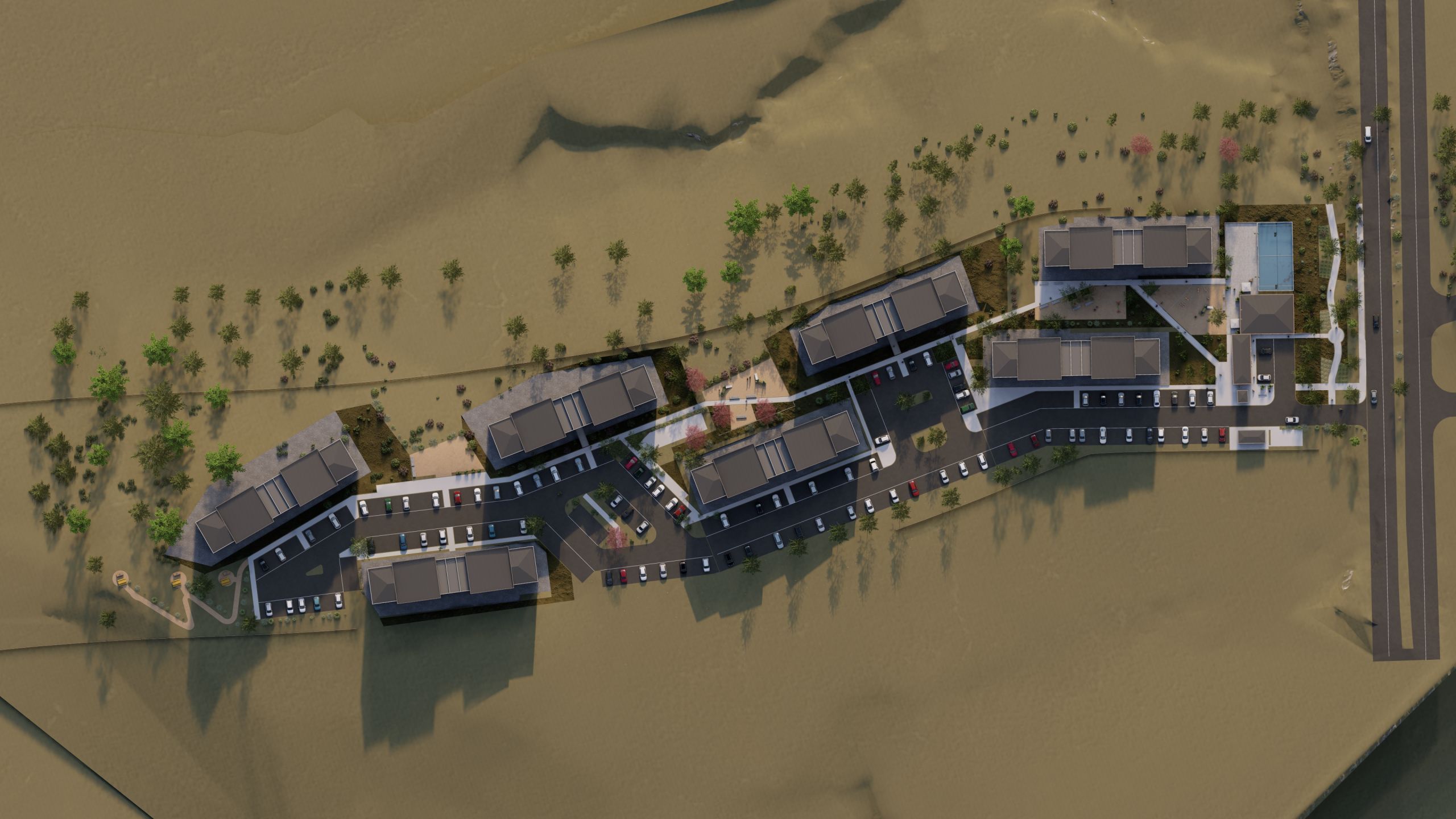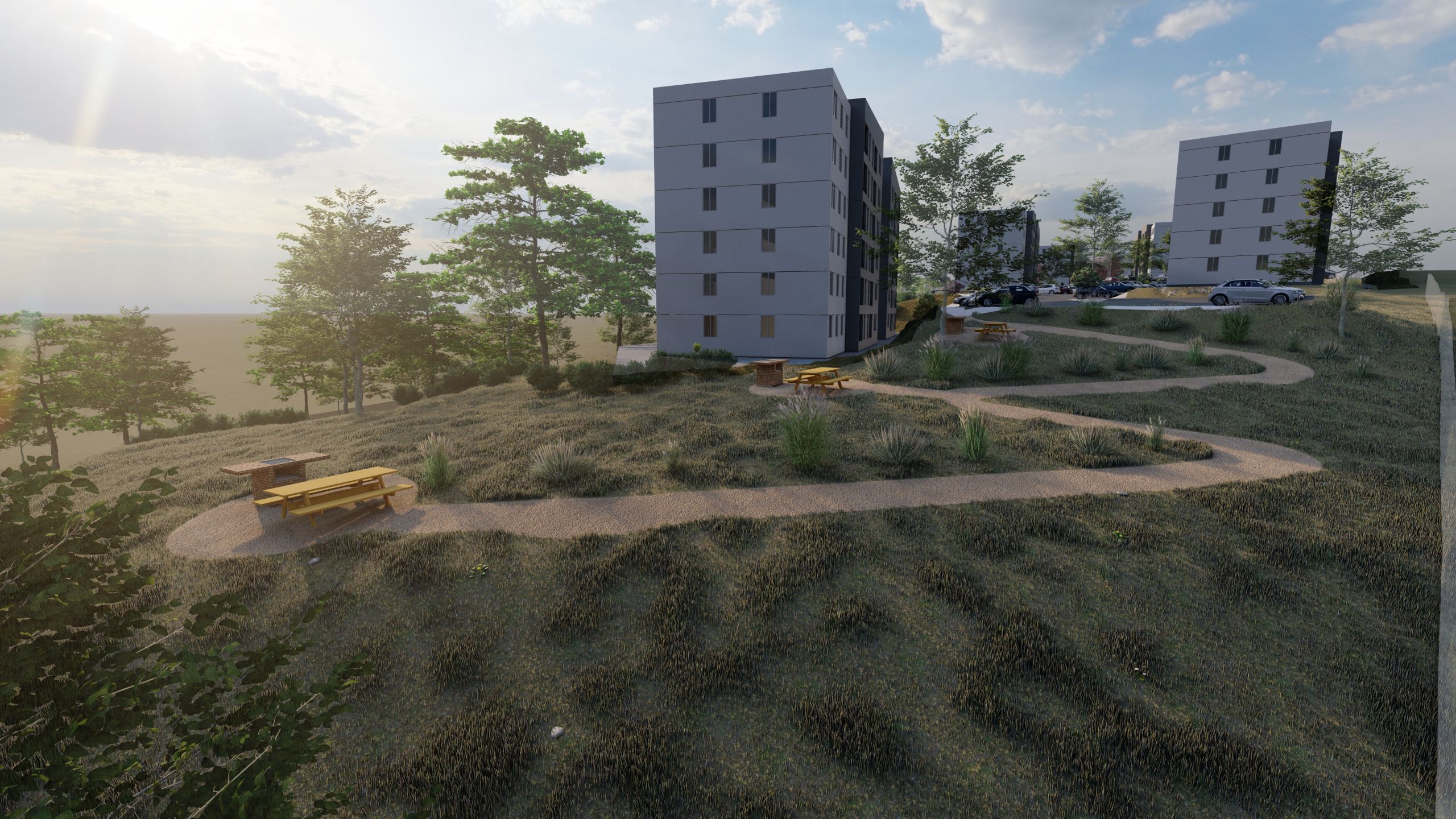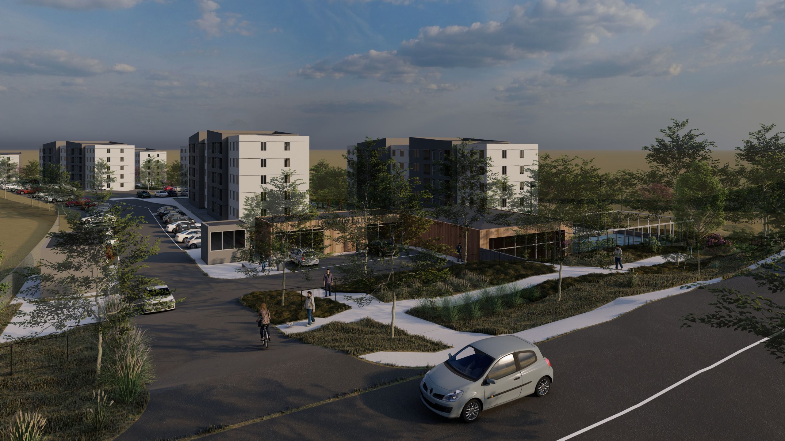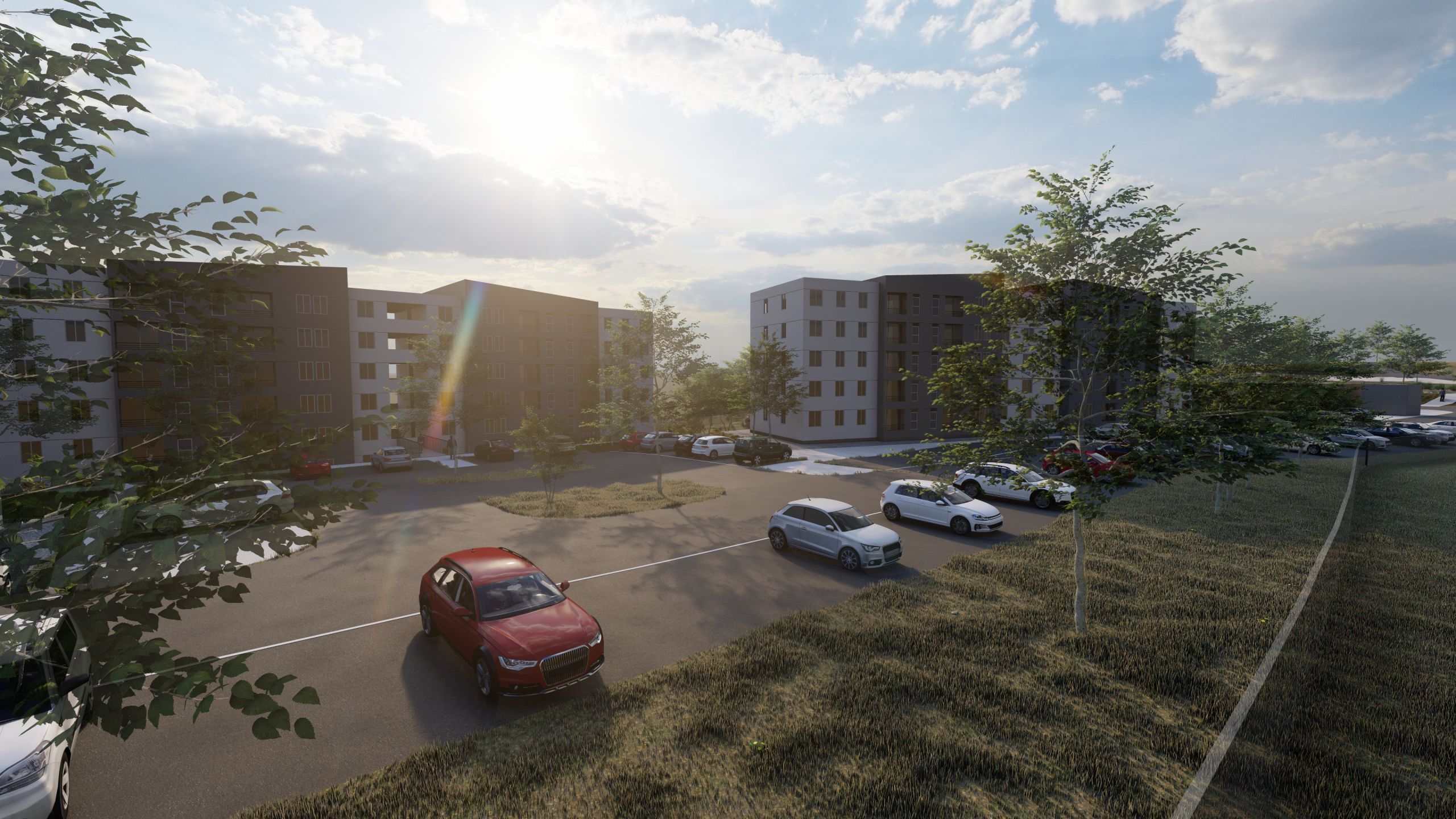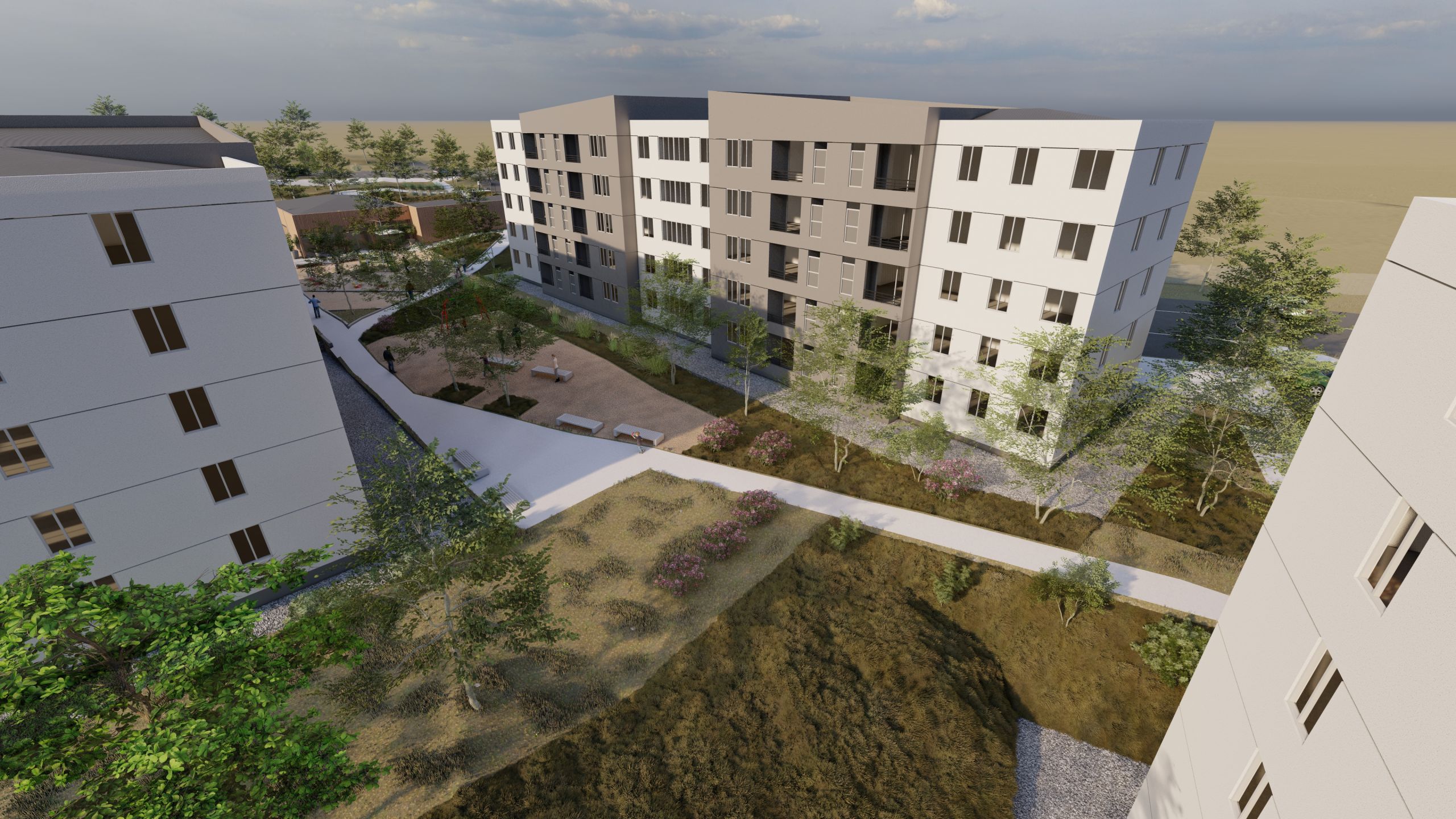 El proyecto cuenta con 7 edificios y 300 departamentos, además de quinchos, sala multiuso, juegos infantiles, bicicleteros, locales comerciales y cancha de pádel.